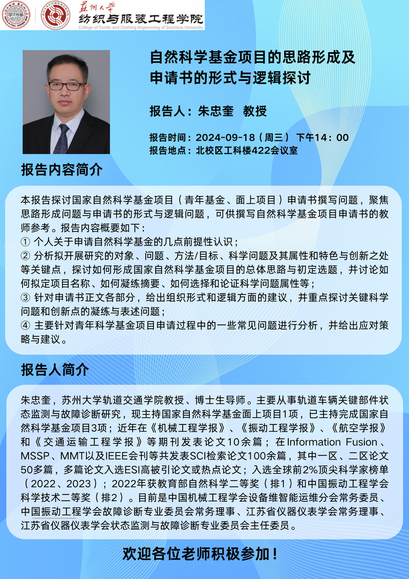 纺织与服装工程学院报告:自然科学基金项目的思路形成及申请书的形式与逻辑探讨