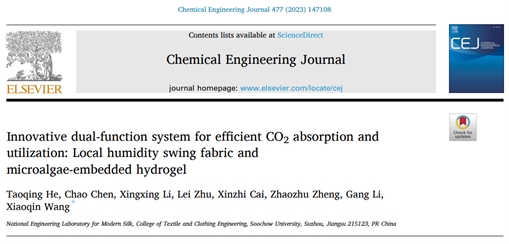 苏州大学现代丝绸国家工程实验室王晓沁教授团队:高效吸收和利用二氧化碳的双功能系统:局部变湿吸附织物和水凝胶固定化微藻