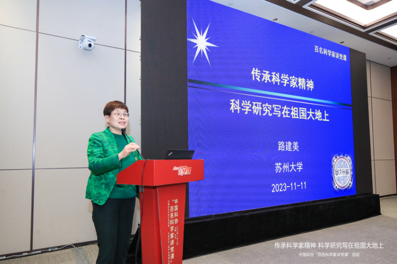 11月11日下午,中国纺织工程学会理事会党委主办的中国科协“百名科学家讲党课”活动举行,苏州大学博士生导师、苏州市科协主席、俄罗斯工程院外籍院士路建美教授应邀做了题为“传承科学家精神 科学研究写在祖国大地上”的主题党课报告。
