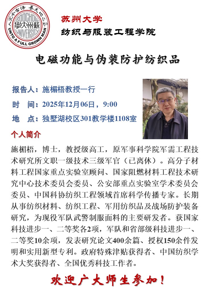 纺织与服装工程学院讲座报告:电磁功能与伪装防护纺织品